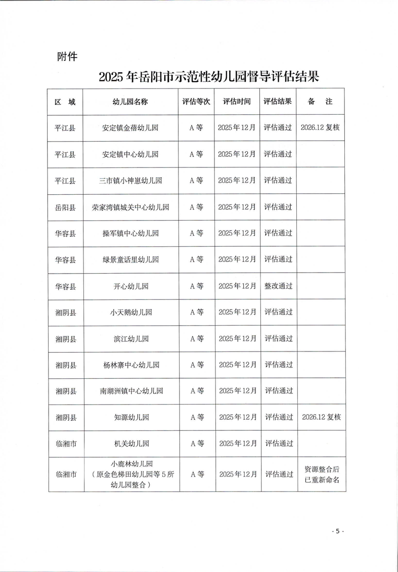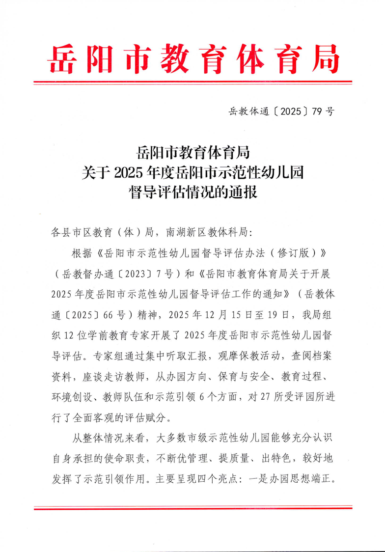 岳阳市教育体育局关于2025年度岳阳市示范性幼儿园督导评估情况的通报