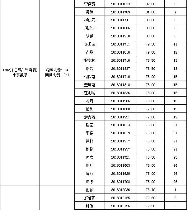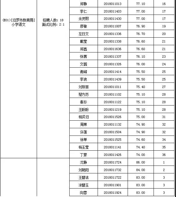 汨罗市2018年教育系统公开招聘专业技术人员入围面试人员名单