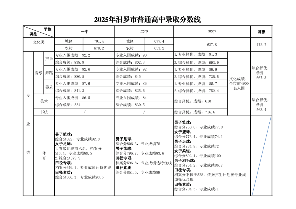 2025年汨罗市普通高中录取分数线新鲜出炉!