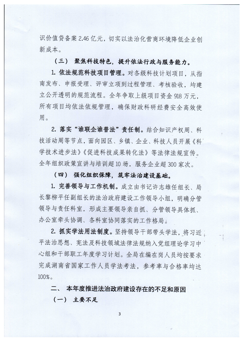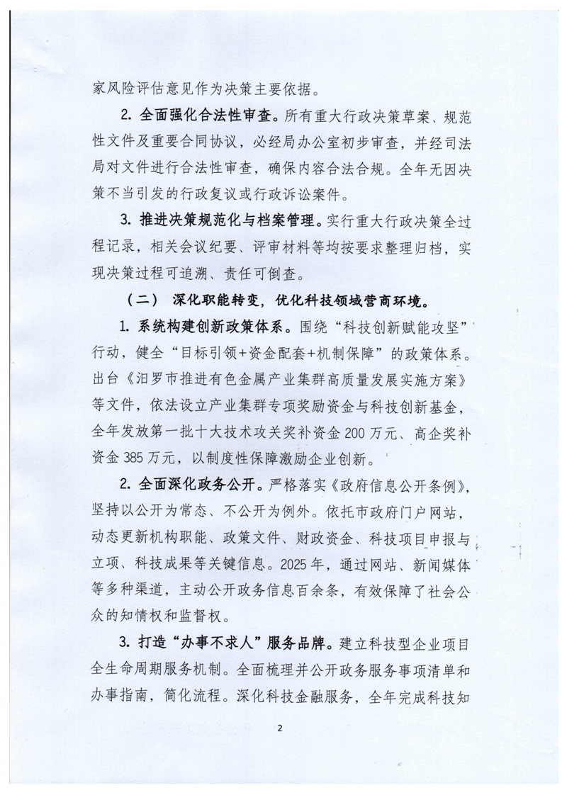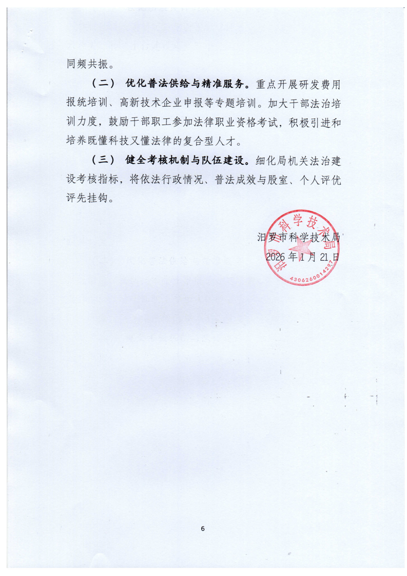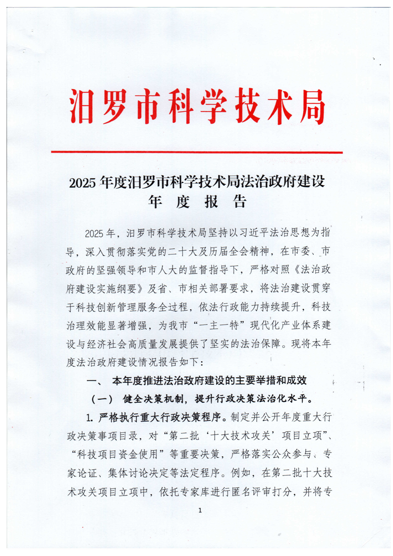2025年汨罗市科技局法治政府建设年度报告