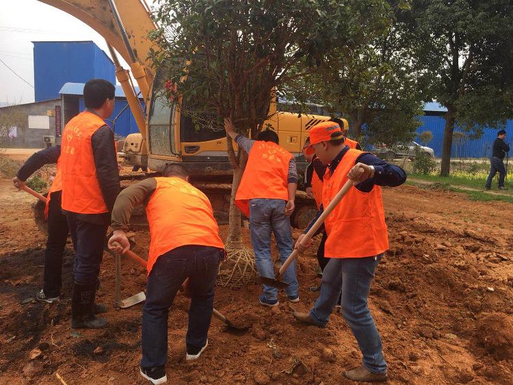 植树现场,在专业技术人员的实地指导下,大家争先恐后领取工具,一个个干劲十足,场面热火朝天,领导班子与干部职工齐心协力,挖坑,栽树,培土,环环相扣,经过大家的努力,150棵树苗伴随着汗水和希望被种下,为服务中心增添了一抹新绿。