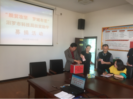 汨罗市科技局开展“脱贫攻坚、罗城有爱”募捐活动
