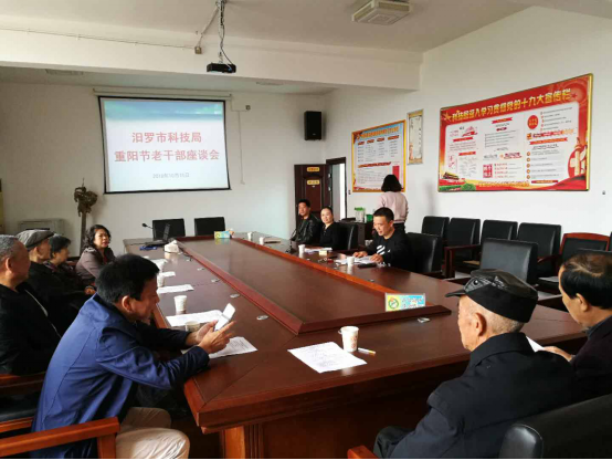 10月16日,正逢重阳节到来之际,汨罗市科技局召开老干部座谈会。科技局党组书记蒋海龙率全体班子成员与10余名离退休老干部齐聚一堂,欢庆佳节。