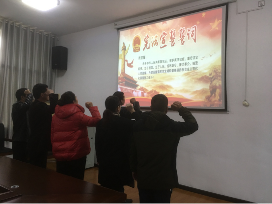 12月4日是第五个国家宪法日,按照市委市政府的统一安排,科技局积极开展了宪法宣传日活动。本次“宪法宣传日”的主题为:“尊崇宪法、学习宪法、遵守宪法、维护宪法、运用宪法”。上午九点,科技局党政班子成员齐聚党建室,举行宪法宣誓仪式。宣誓后,局党组书记蒋海龙要求大家忠于宪法,依法履职,实干担当,清廉自守,勤勉尽责做好本职工作,尽心竭力为群众办好事、解难事。为建设更高品质生态文化活力汨罗奉献自己的力量。