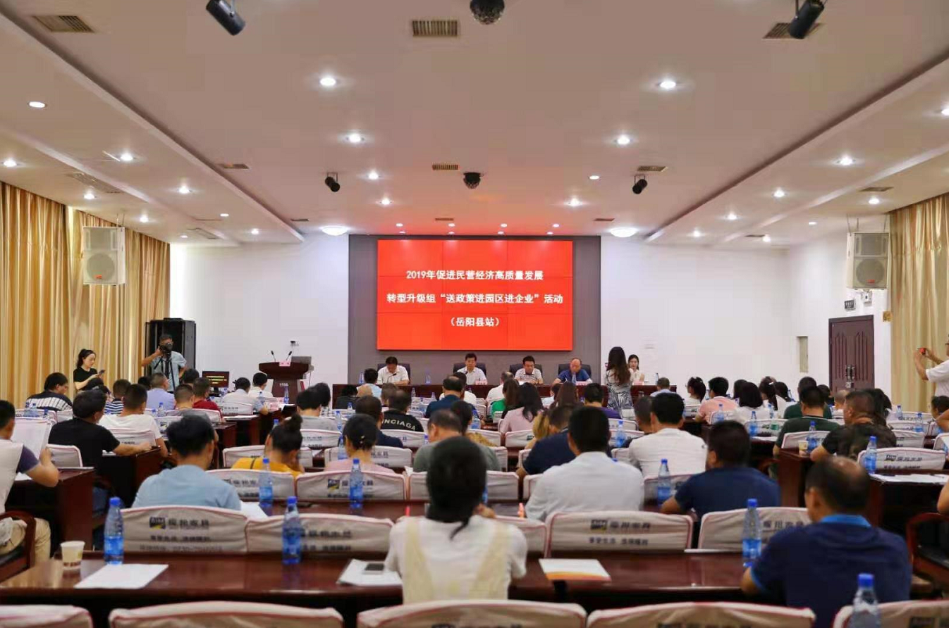 为贯彻落实中央、省、市关于扶持民营经济高质量发展有关精神,宣传解读支持中小企业、民营经济发展的各项政策措施,积极营造“知政策、优环境、促发展”的良好氛围,引导更多的民营企业向创新驱动、高端高新、质量品牌、绿色发展、现代管理和“三新”经济等方面转型发展,真正让政策“沉下去”、实效“浮上来”,助力民营经济高质量发展。8月19日,2019年岳阳市促进民营经济高质量发展转型升级“送政策进园区进企业”活动第一天在岳阳县、汨罗市分别举行。