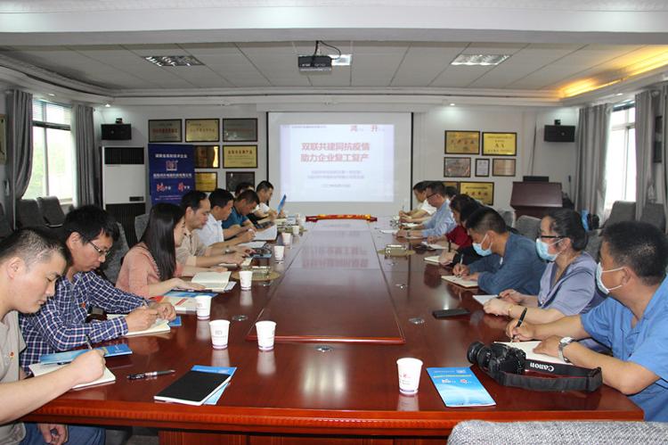 5月15日,以“双联共建同抗疫情 助力企业复工复产”为主题,岳阳市科技局机关一支部赴岳阳鸿升电磁科技有限公司开展党建活动。一支部全体党员、鸿升电磁支委会成员及部分党员参加。
