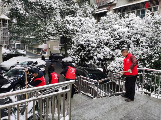 活动中,大家不畏严寒,相互配合,你铲我扫,一点点地将积雪和冰层铲起集中推堆放。确保路面与台阶彻底清理的干干净净。