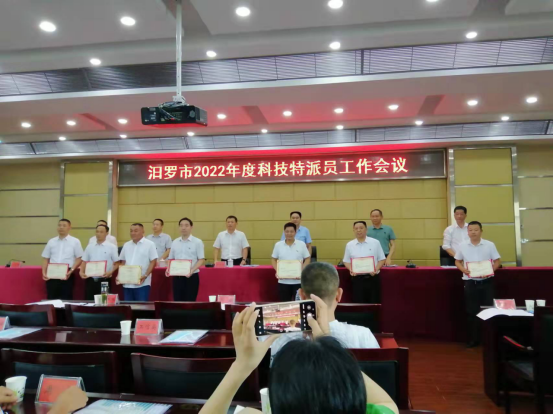 (汨罗市科技局)6月15日,汨罗召开2022年度科技特派员工作会议,总结2021年工作,安排部署今年工作。会议由市委组织部副部长孙时华主持,科技局党组书记做工作报告。会上,表彰了一批奉献精神强、工作业绩突出的科技特派员,同时聘任甘德欣等28人为2022年度汨罗市科技特派员,服务农业实体经济,担纲集体经济薄弱村“产业发展指导员”。市委常委、副市长李亚江出席会议。