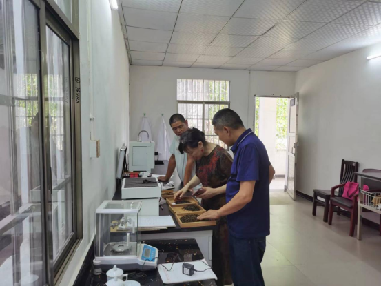 在千盏茶业,傅冬和教授带着从省城带来得特级和一级红茶样品,和千盏茶业生产的红茶从色泽、加工成熟度和现场泡水品茶进行比较,找出红茶产品有待进一步改进的地方,并从生产工艺流程方面,指出了在加热、控温、通风等加工环节的技术技巧。