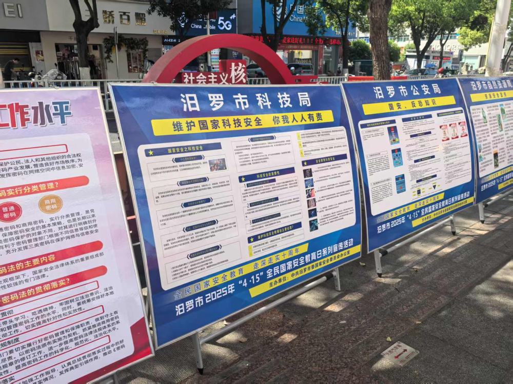 2025年4月15日是第十个全民国家安全教育日,为深入贯彻落实习近平总书记关于全民加强国家安全教育的重要指示精神,增强全民国家安全意识,市科技局负责同志按照工作要求,带领部分党员干部于4月15日下午,在汨罗市天恒生活广场开展“4.15”全民国家安全教育日集中宣传活动,活动主题为“全民国家安全教育,走深走实十周年”。