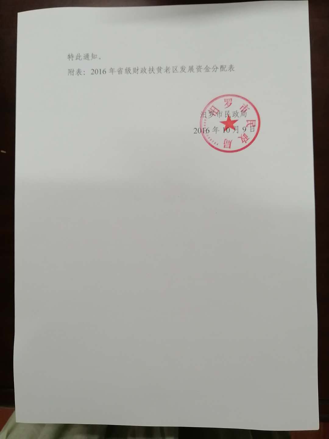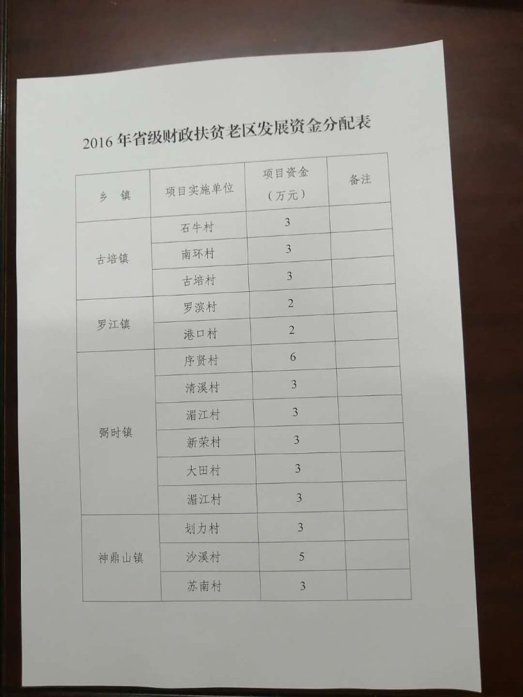 民政局关于下达2016年度省级财政扶贫老区发展资金的通知