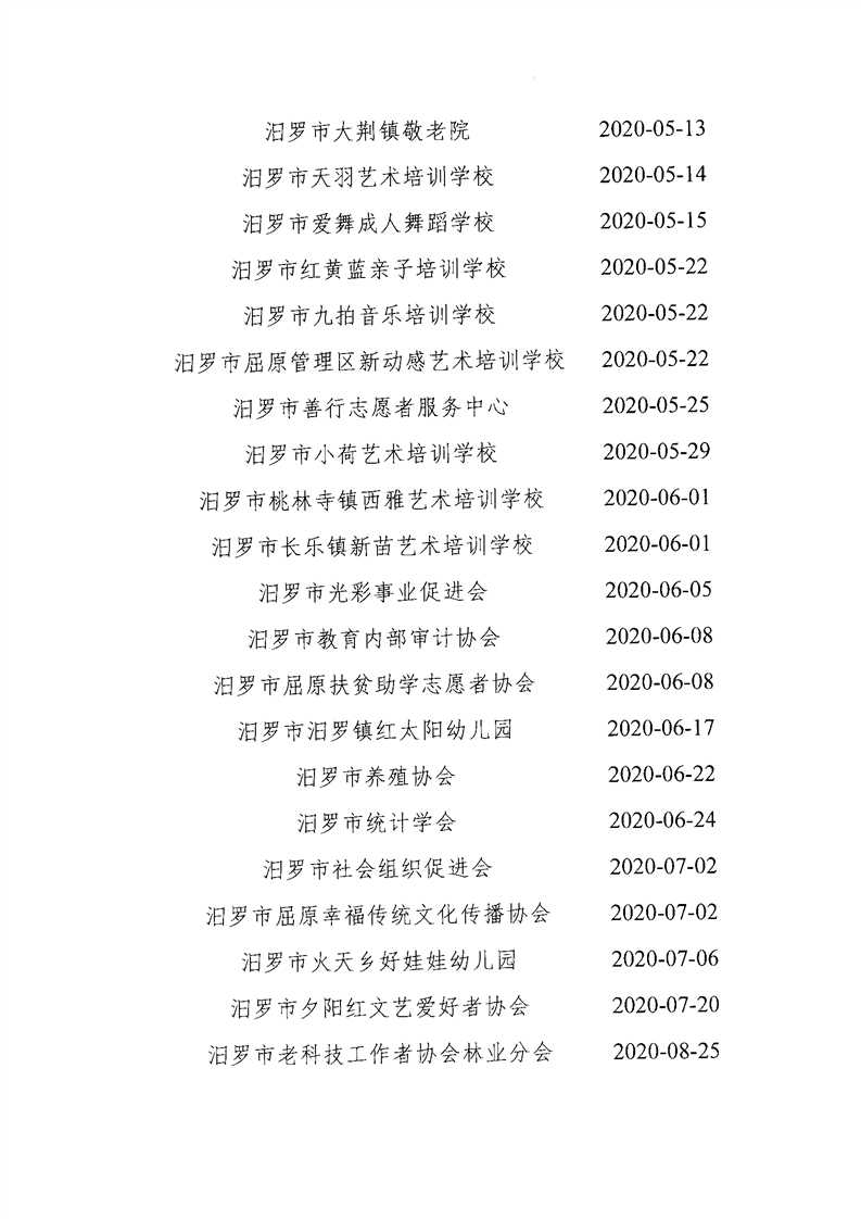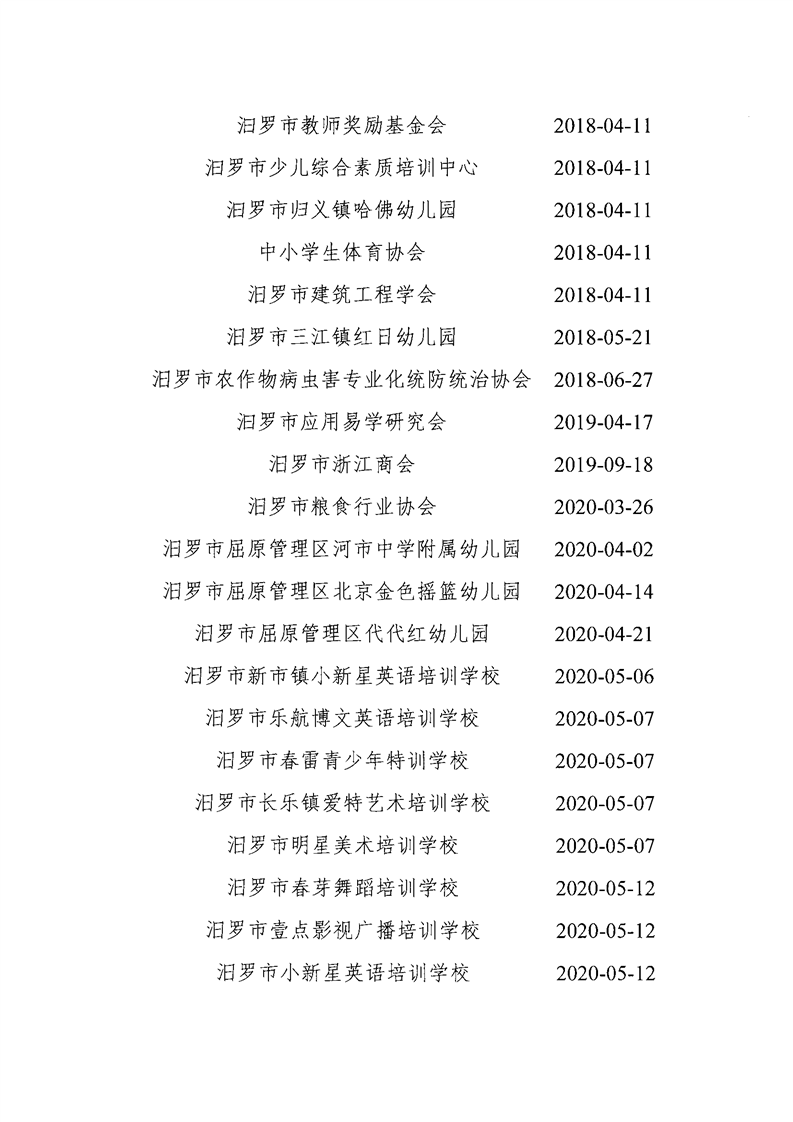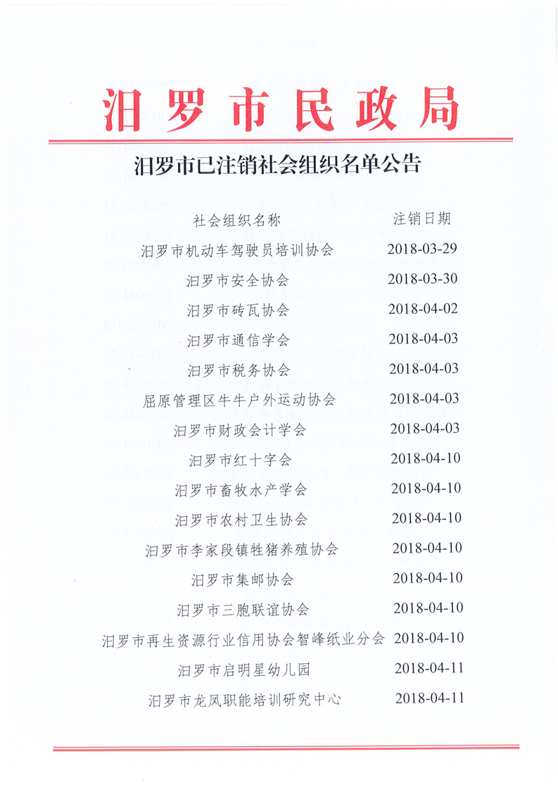 汨罗市已注销社会组织名单公示