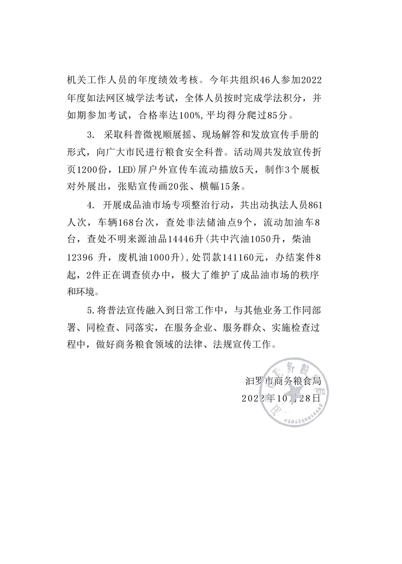 2022年汨罗市各个单位履职评议报告