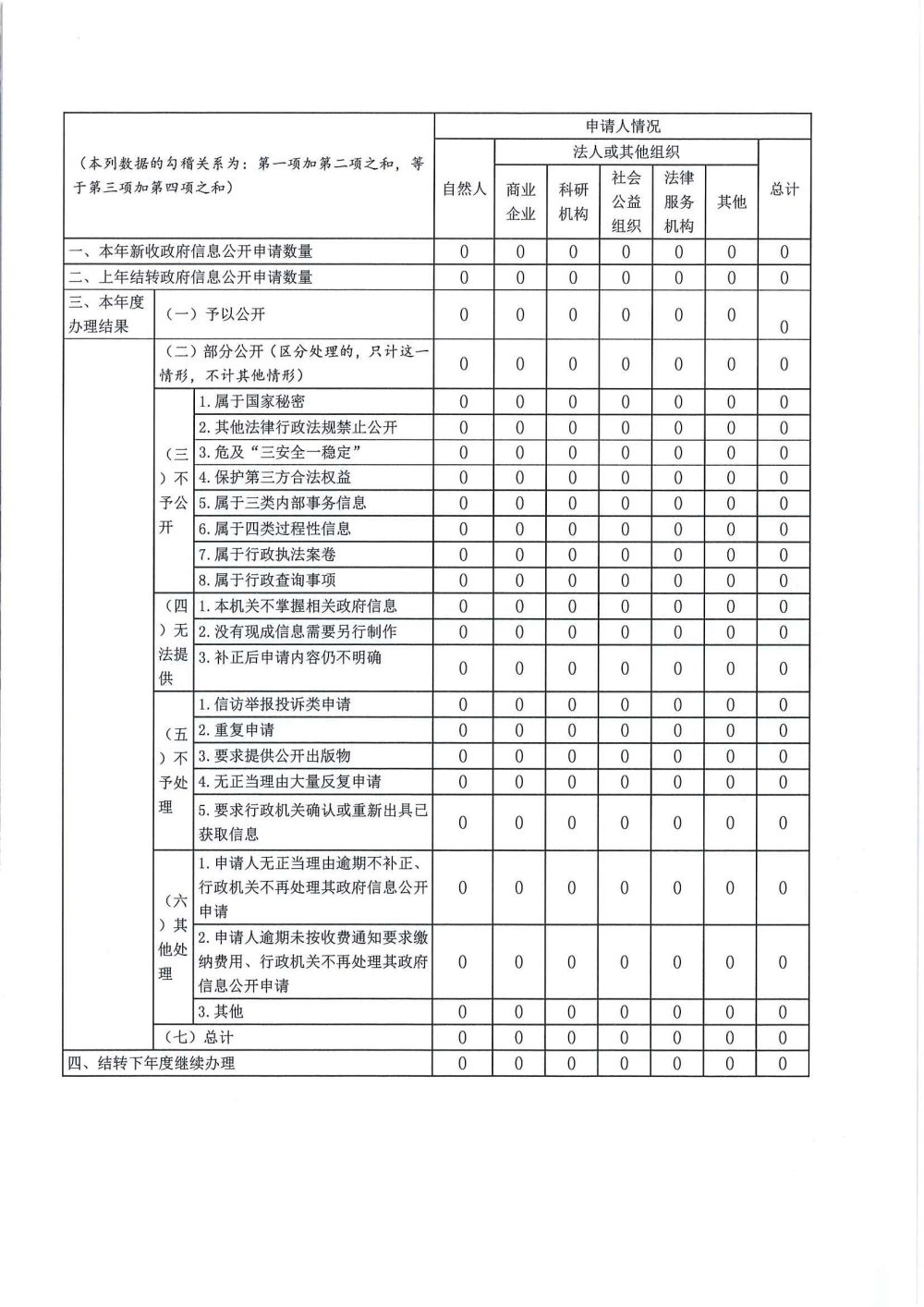 三、收到和处理政府信息公开申请情况