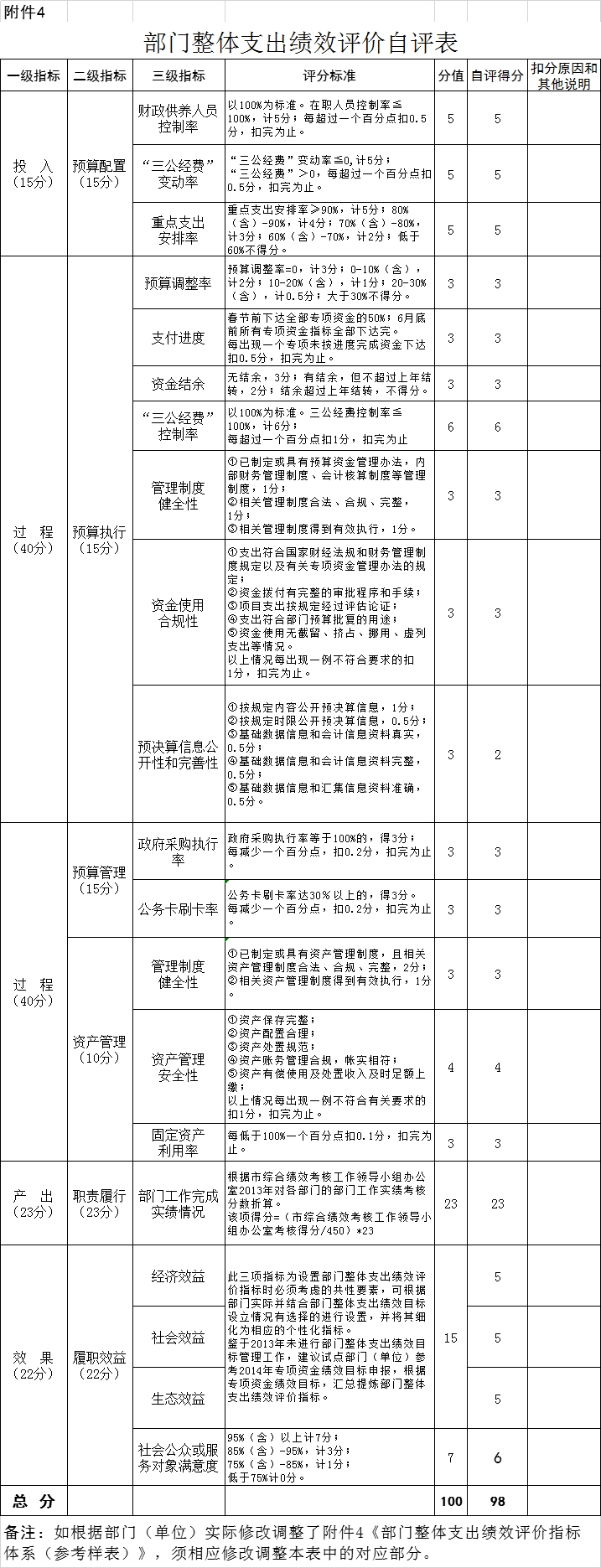 产出目标 (部门工作实绩,即绩效办制定的单位年度考核计分办法中考核的部门工作实绩内容) |