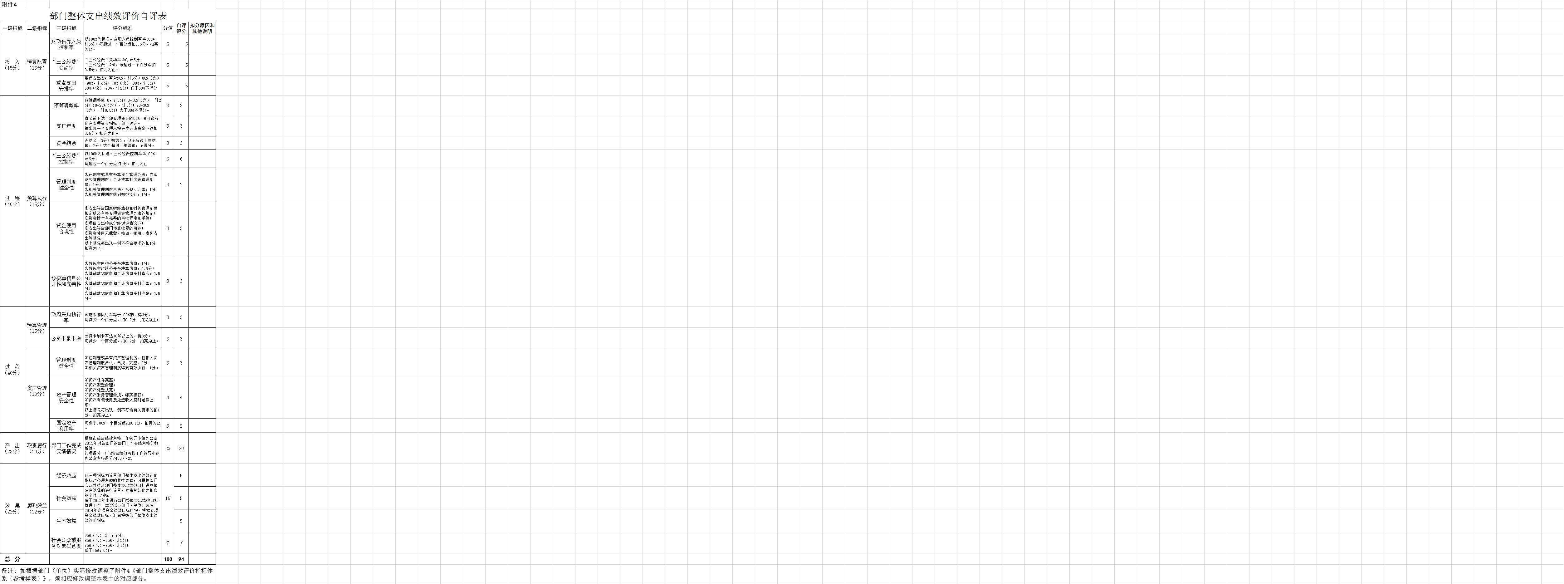 产出目标 (部门工作实绩,即绩效办制定的单位年度考核计分办法中考核的部门工作实绩内容) |