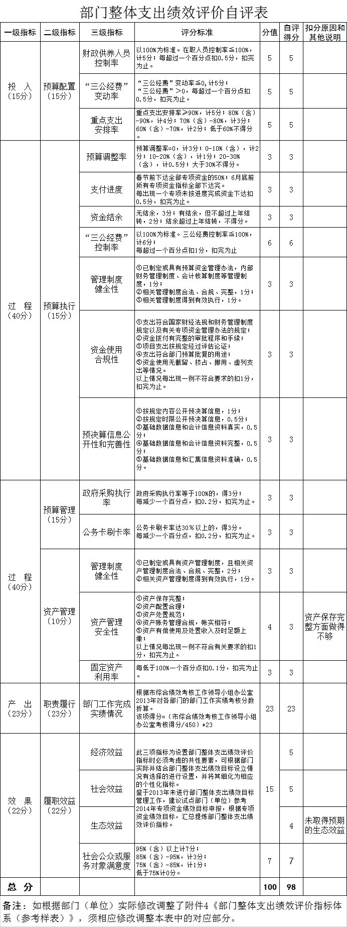 产出目标 (部门工作实绩,即绩效办制定的单位年度考核计分办法中考核的部门工作实绩内容) |