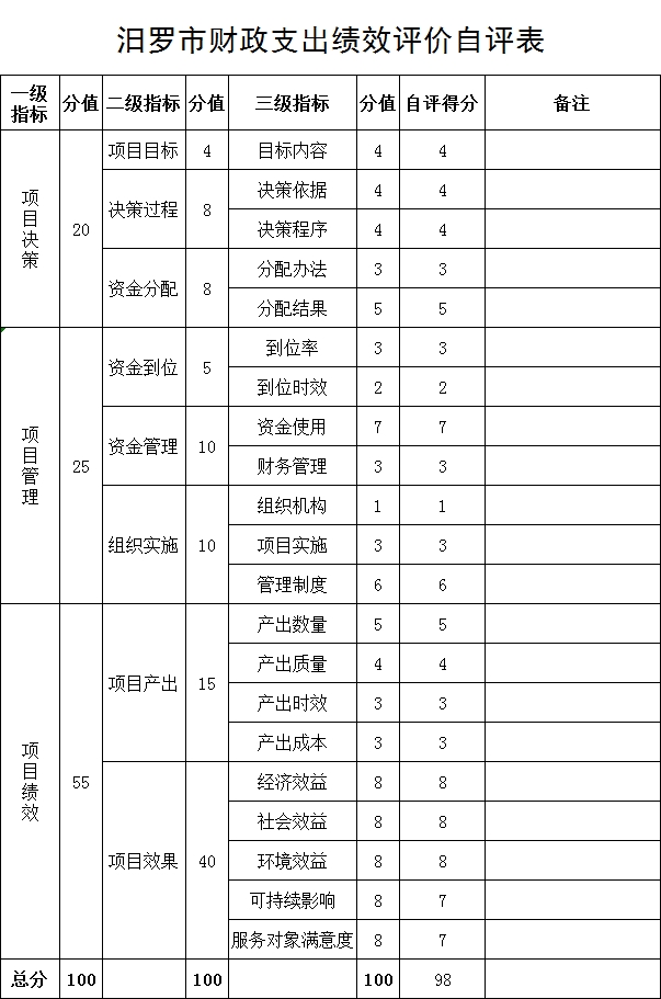 汨罗市财政支出项目绩效评价自评报告