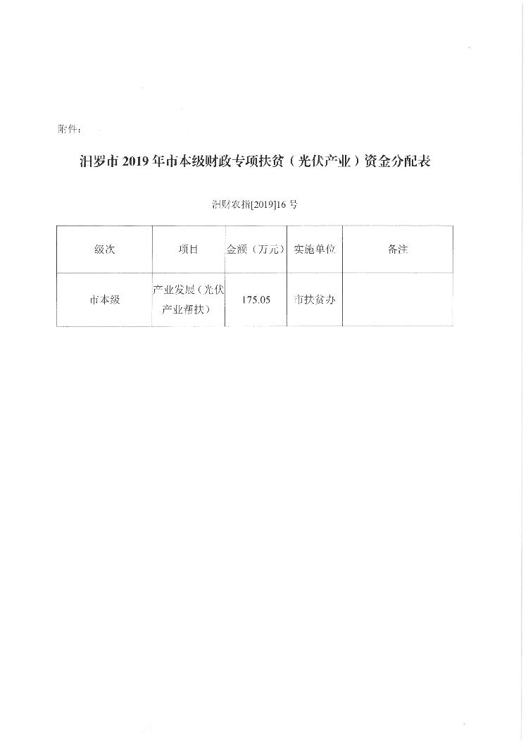 关于下达2019年市本级财政专项扶贫(光伏产业)资金的通知