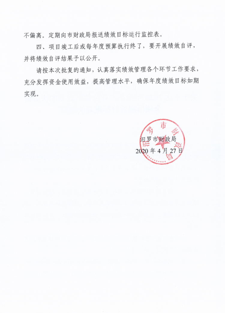 汨罗市财政局关于下达2020年油茶产业扶贫财政专项扶贫资金项目绩效目标批复的通知