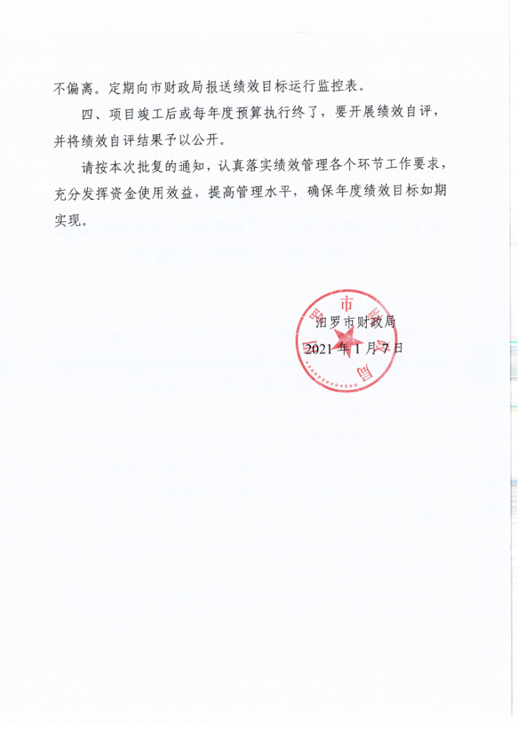 汨罗市财政局关于下达2021年以工代赈财政专项扶贫资金项目绩效目标批复的通知