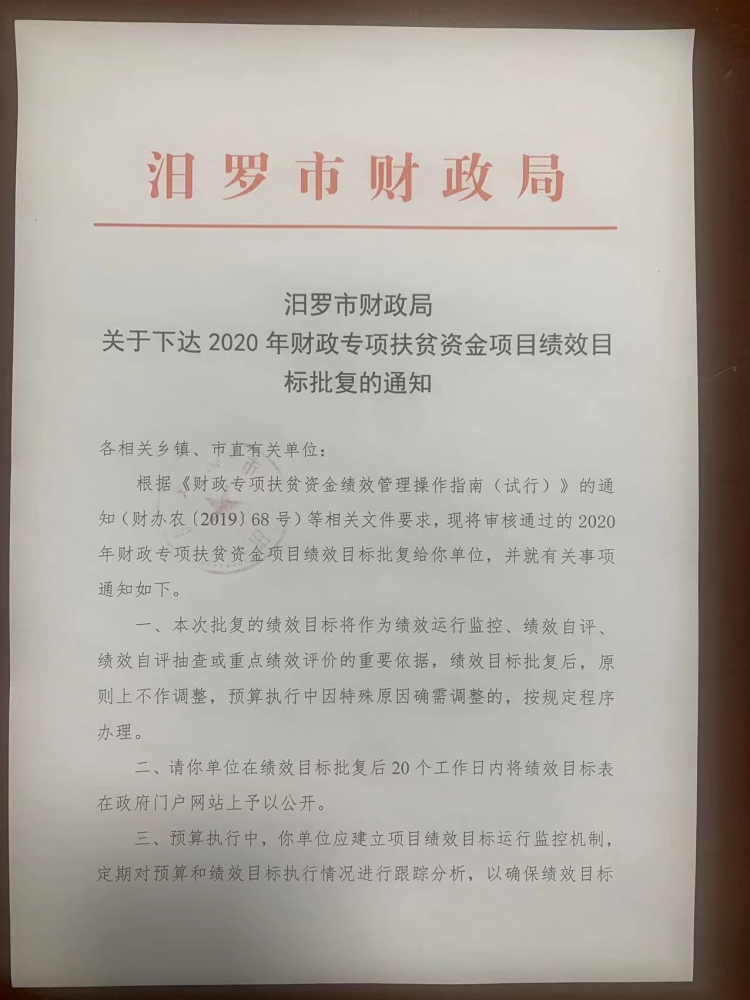 财政局关于下达2020年财政专项扶贫资金项目绩效目标批复的通知