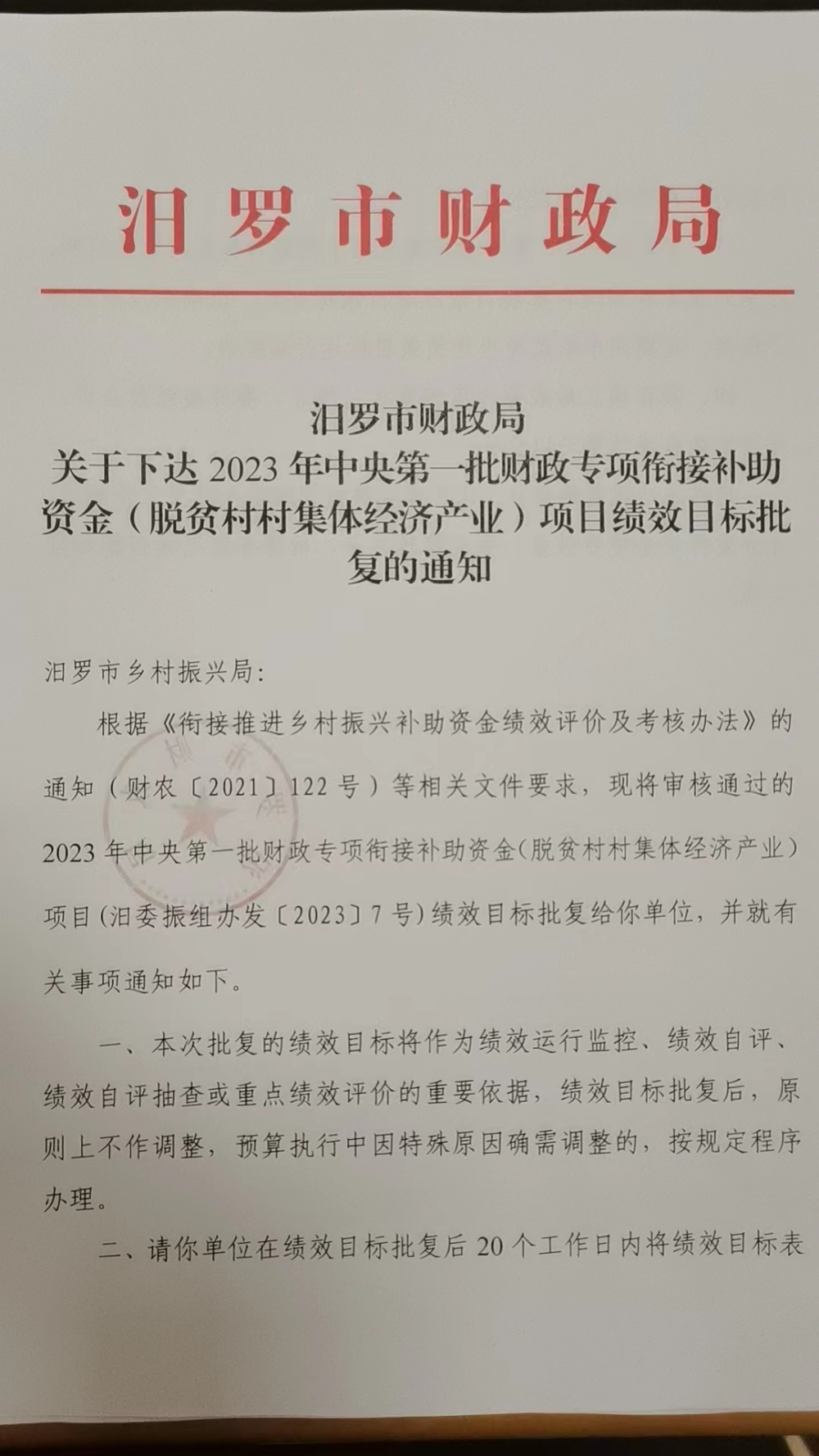 关于下达2023年中央第一批财政专项衔接补助资金(脱贫村村集体经济产业)项目绩效目标批复的通知