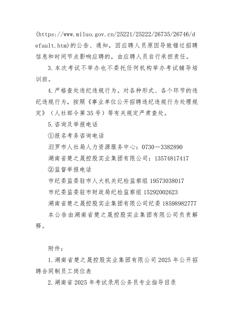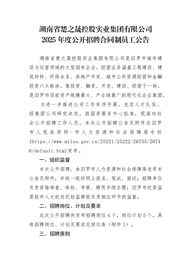 湖南省楚之晟控股实业集团有限公司2025年度公开招聘合同制员工公告