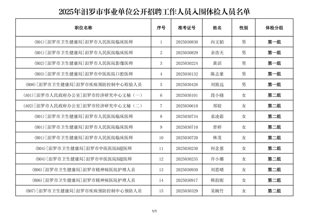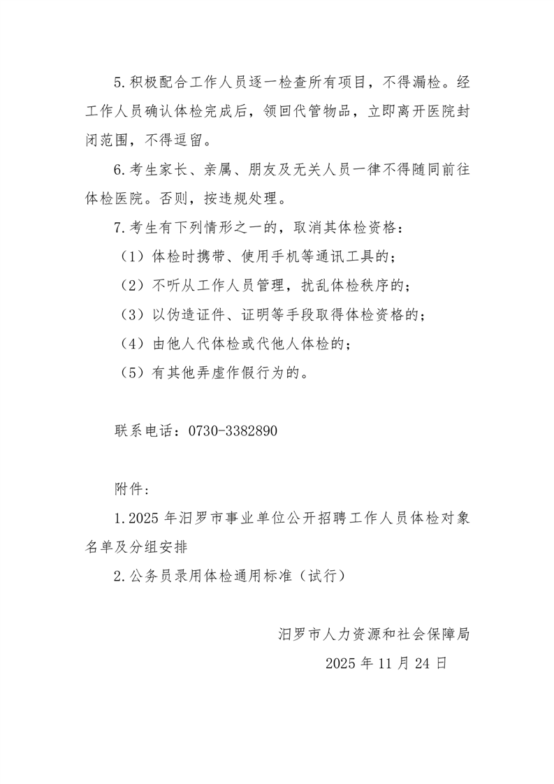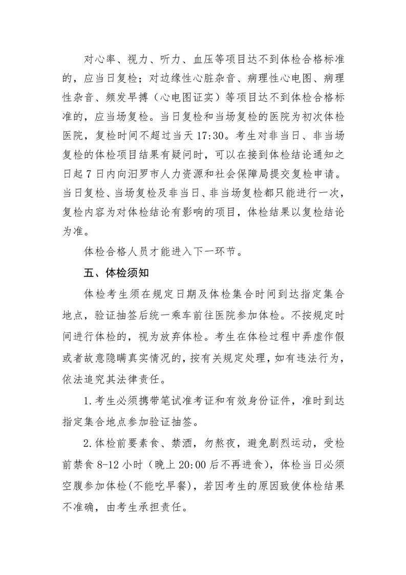 2025年汨罗市事业单位公开招聘工作人员体检公告