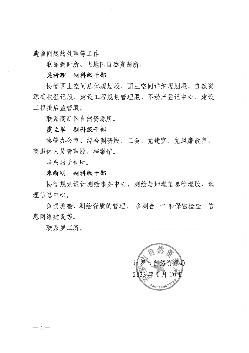 汨罗市自然资源局关于调整党组班子成员及负责干部分工的通知