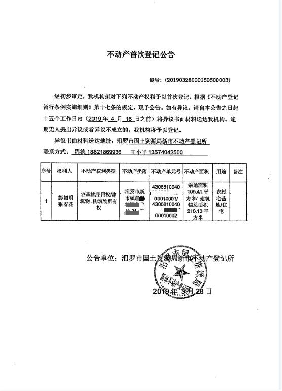 来源:汨罗市不动产登记中心