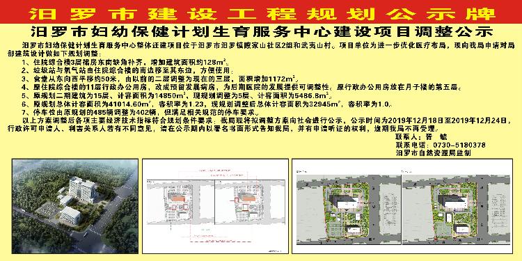 汨罗市妇幼保健计划生育服务中心建设项目调整公示