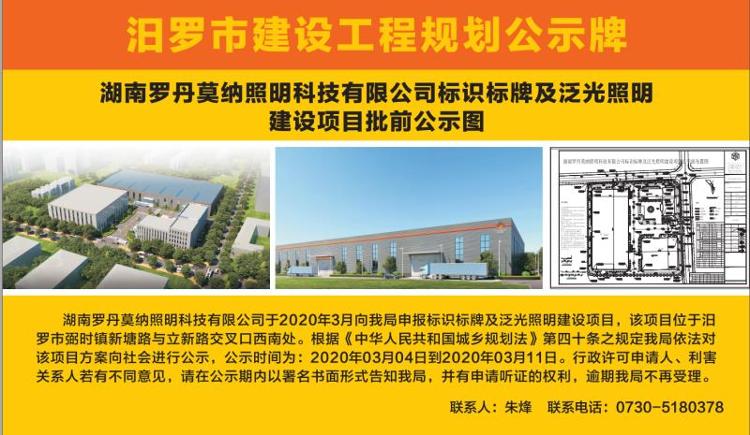 湖南罗丹莫纳照明科技有限公司标识标牌及泛光照明建设项目批前公示图