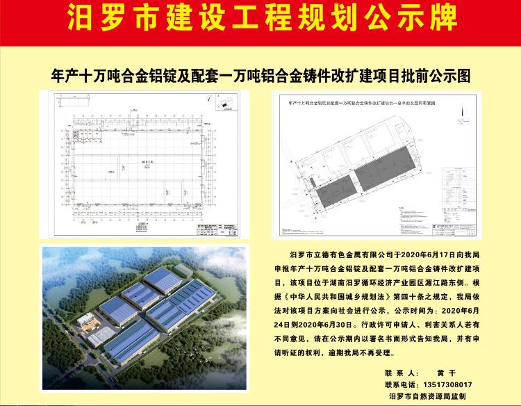 年产十万吨合金铝锭及配套一万吨铝合金铸件改扩建项目批前公示图