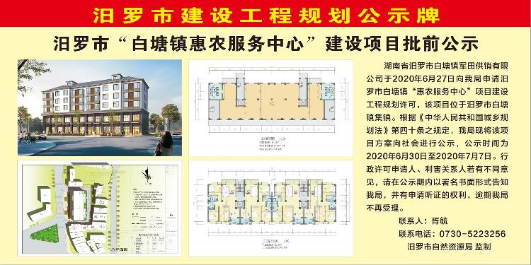 汨罗市“白塘镇惠农服务中心”建设项目批前公示
