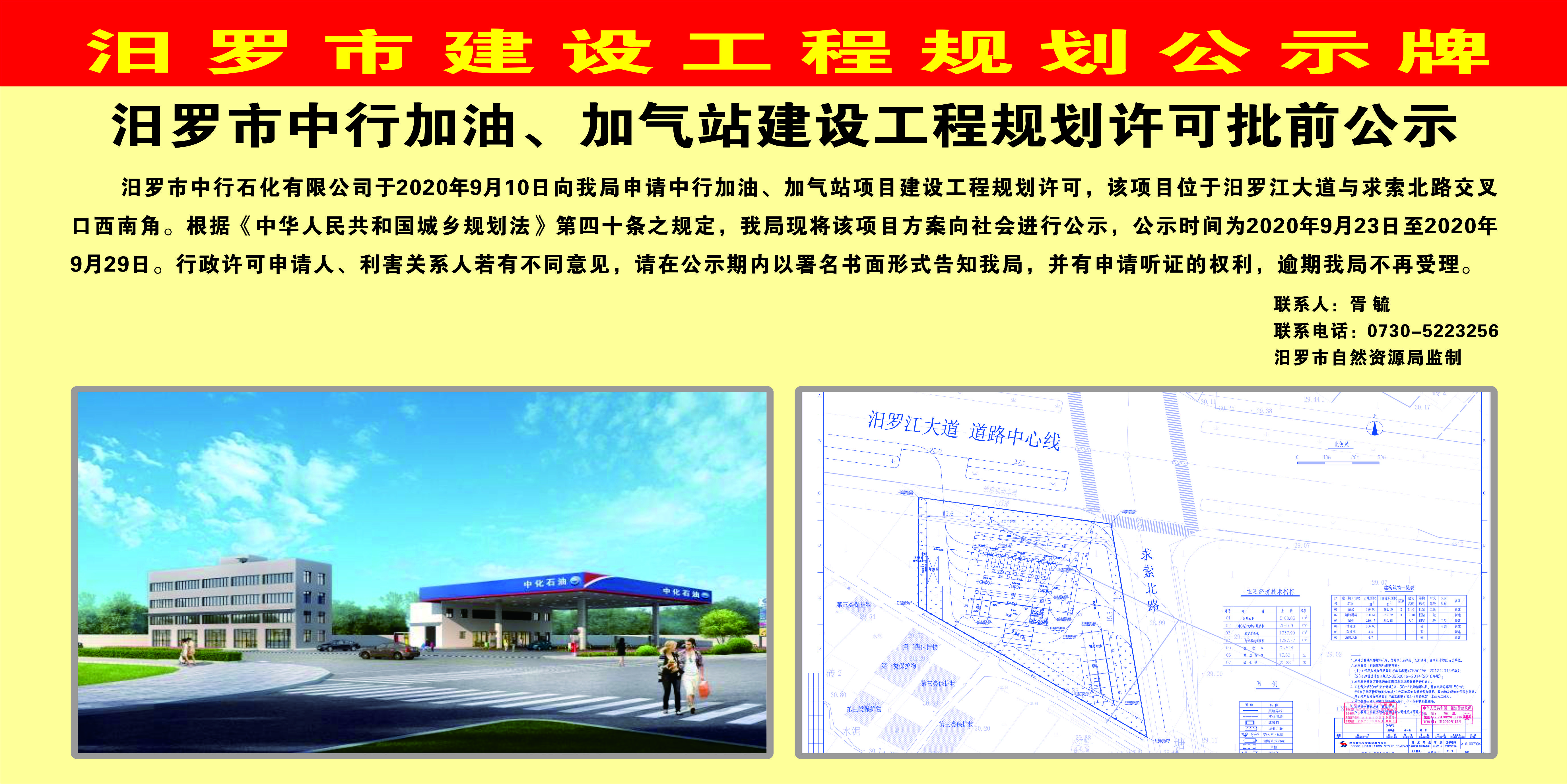 汨罗市中行加油、加气站建设工程规划许可批前公示