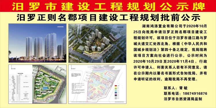 汨罗正则名郡项目建设工程规划批前公示