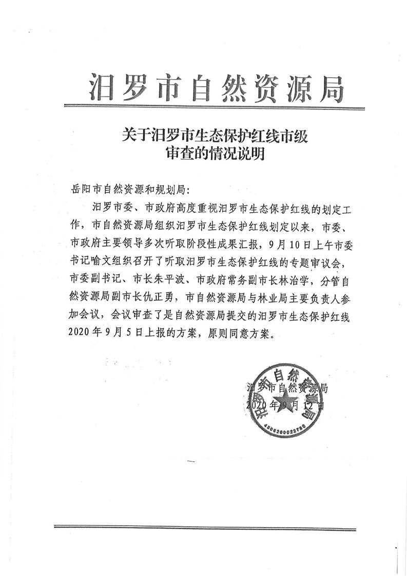 关于汨罗市生态保护红线市级审查的情况说明