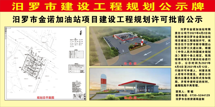 汨罗市金诺加油站项目建设工程规划许可批前公示