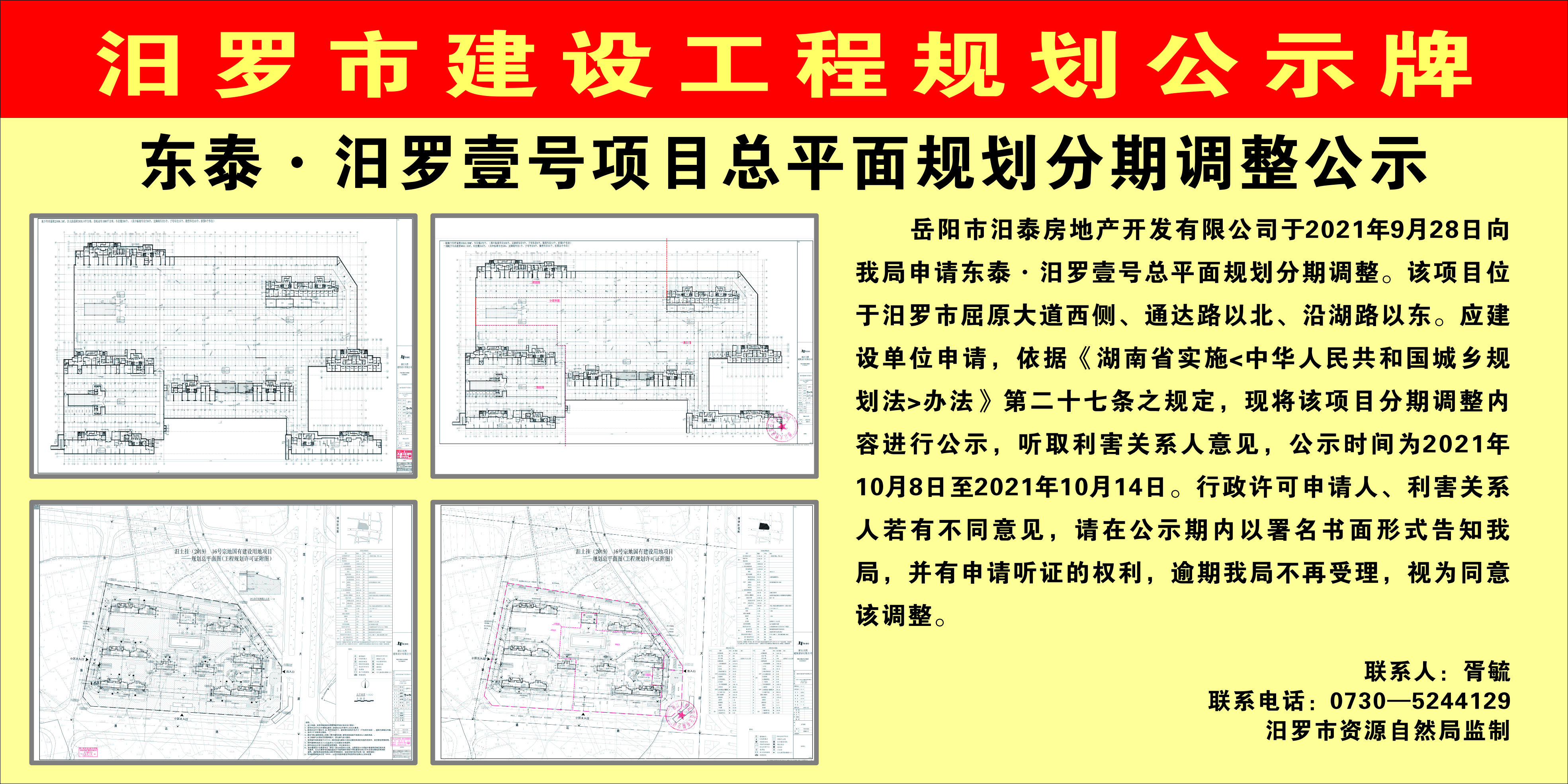 东泰·汨罗壹号项目总平面规划分期调整公示