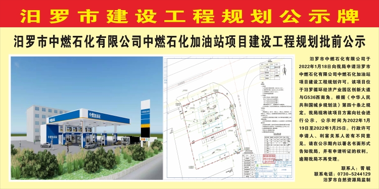 汨罗市中燃石化有限公司中燃石化加油站项目建设工程规划批前公示
