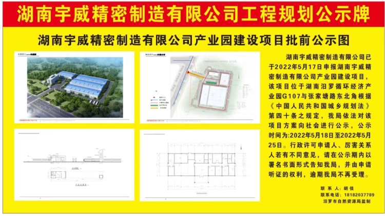 湖南宇威精密制造有限公司产业园建设项目批前公示