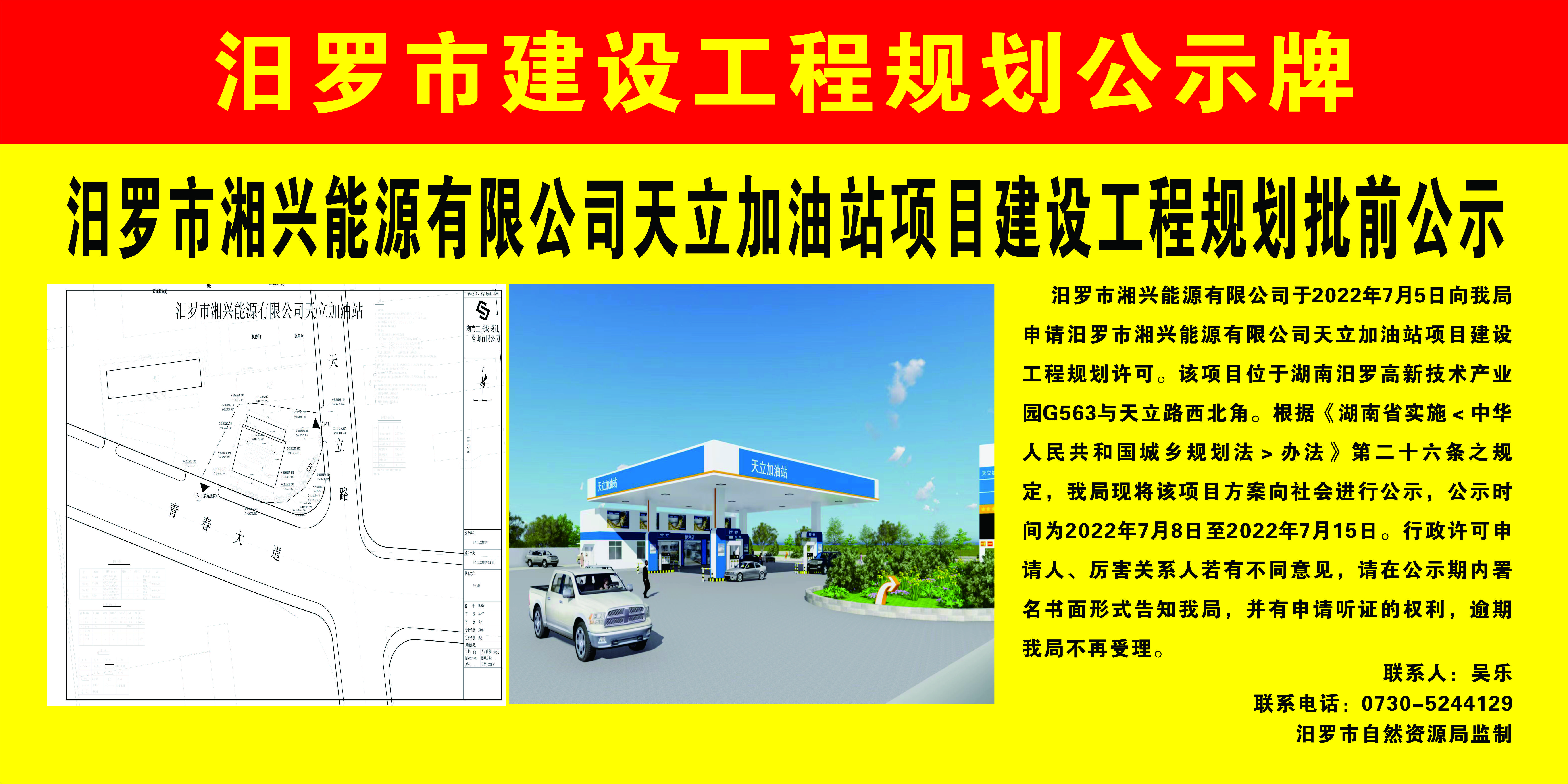 汨罗市湘兴能源有限公司天立加油站项目建设工程规划批前公示