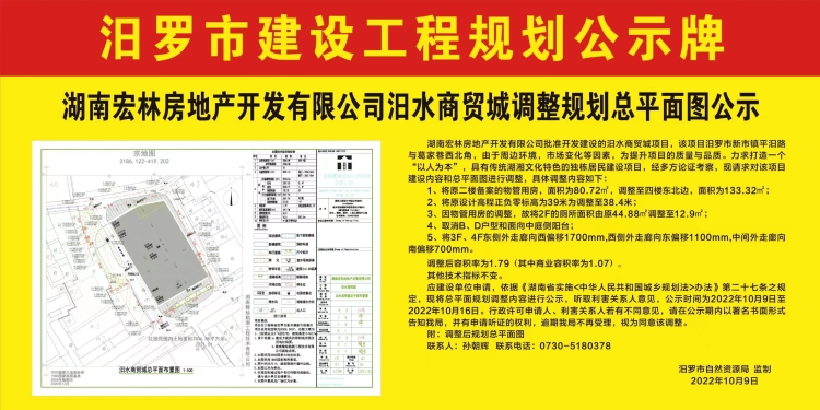 湖南宏林房地产开发有限公司汨水商贸城调整规划总平面图公示