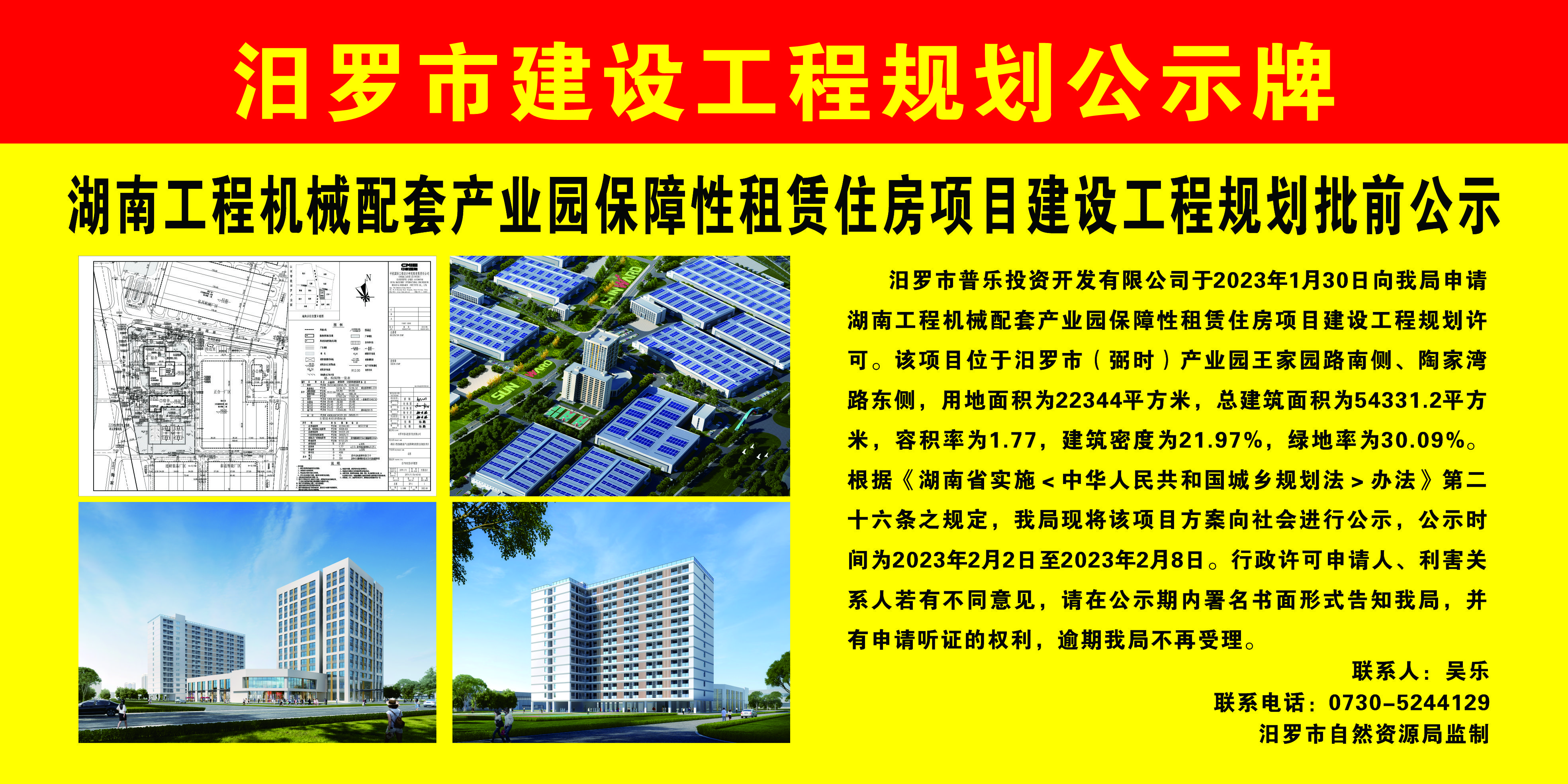 湖南工程机械配套产业园保障性租赁住房项目建设工程规划批前公示