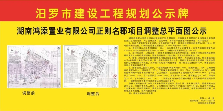湖南鸿添置业有限公司正则名郡项目调整总平面图公示