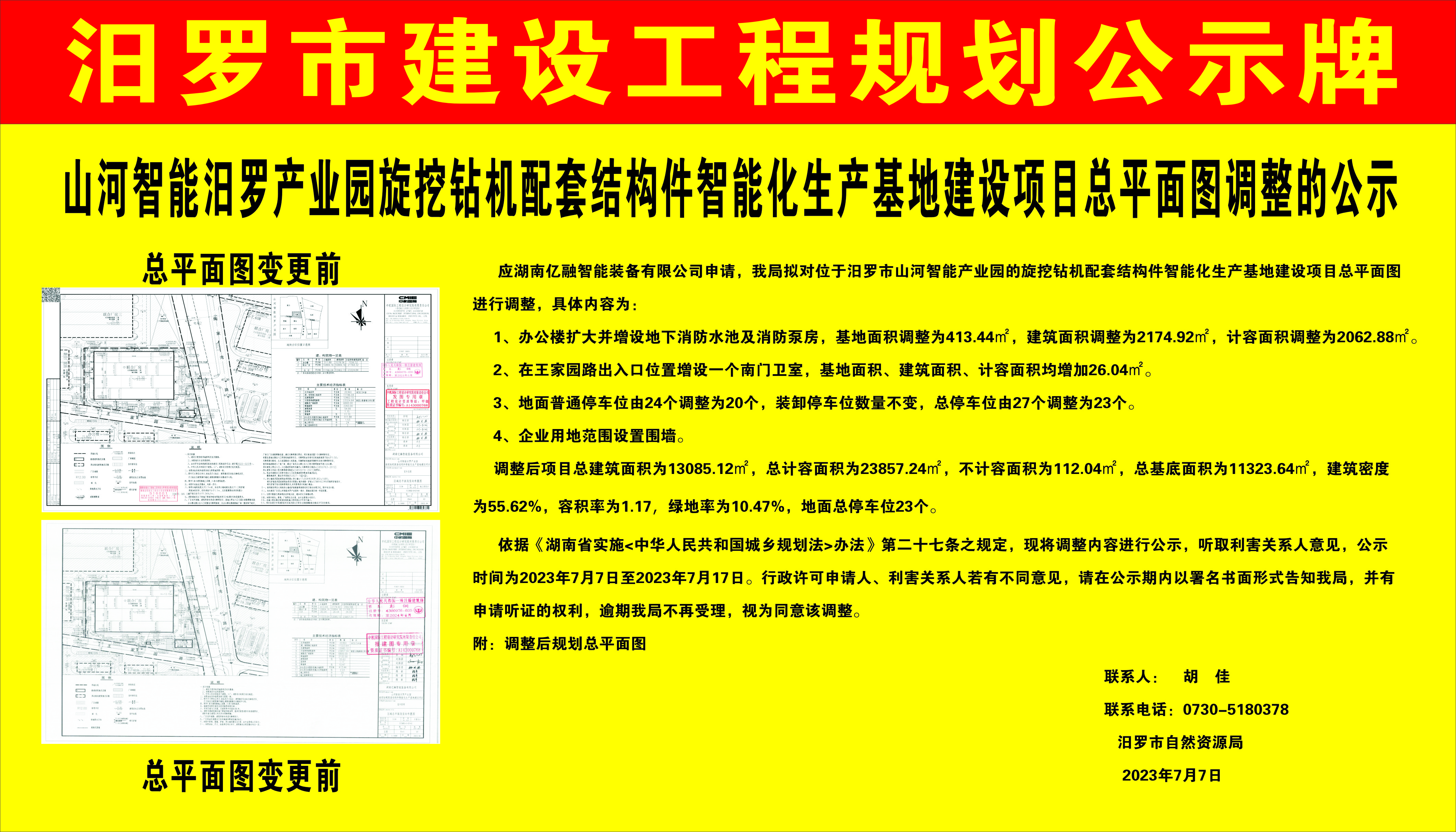 山河智能汨罗产业园旋挖钻机配套结构件智能化生产基地建设项目总平面图调整公示