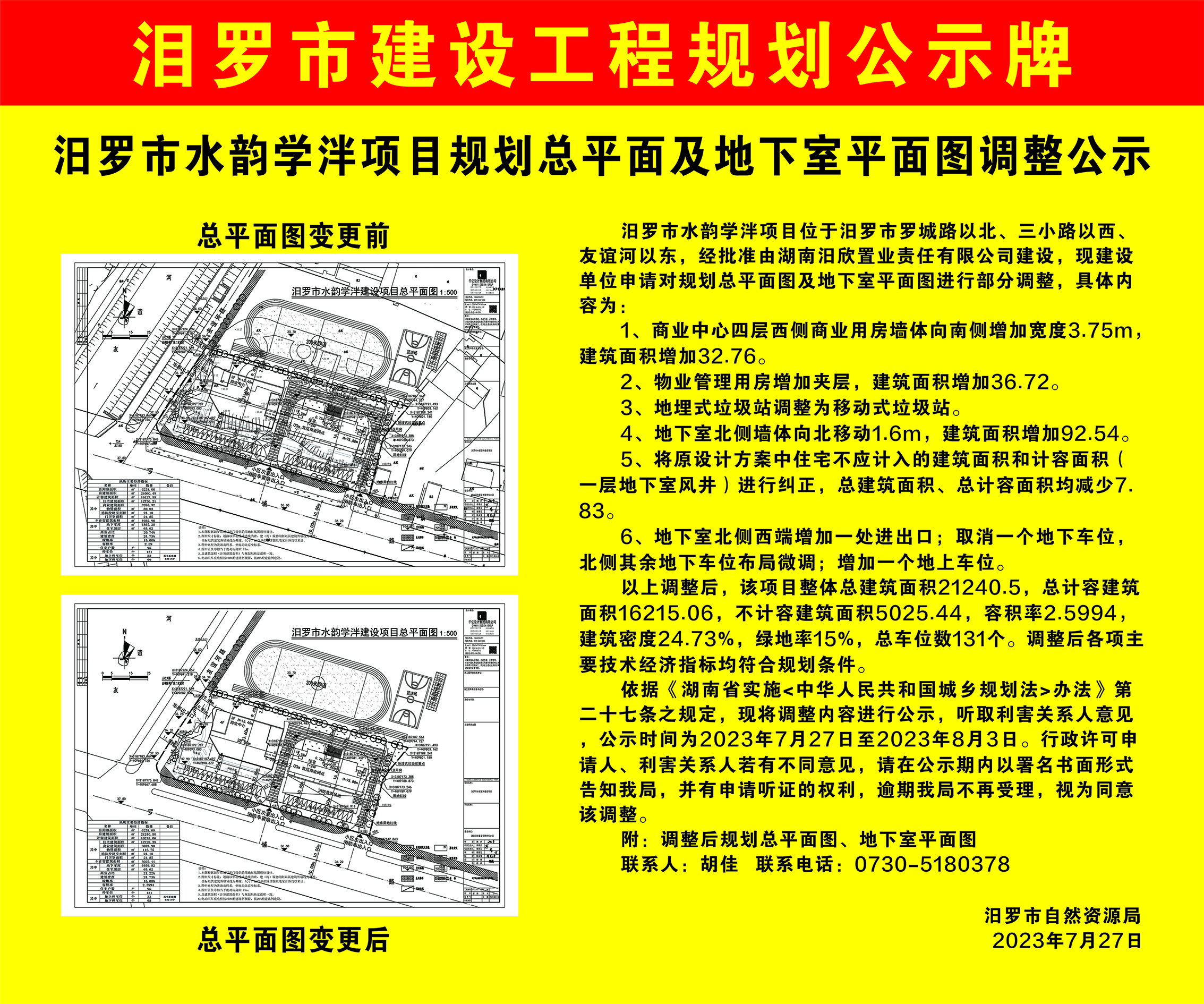 汨罗市水韵学泮项目规划总平面及地下室平面图调整公示