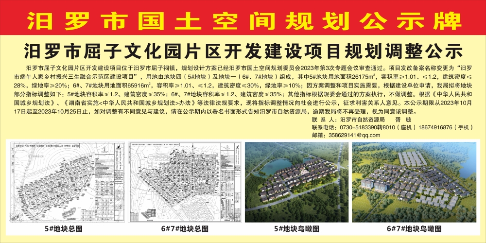 汨罗市屈子文化园片区开发建设项目规划调整公示