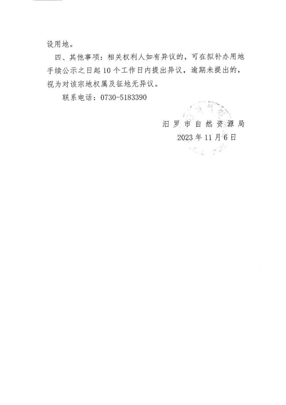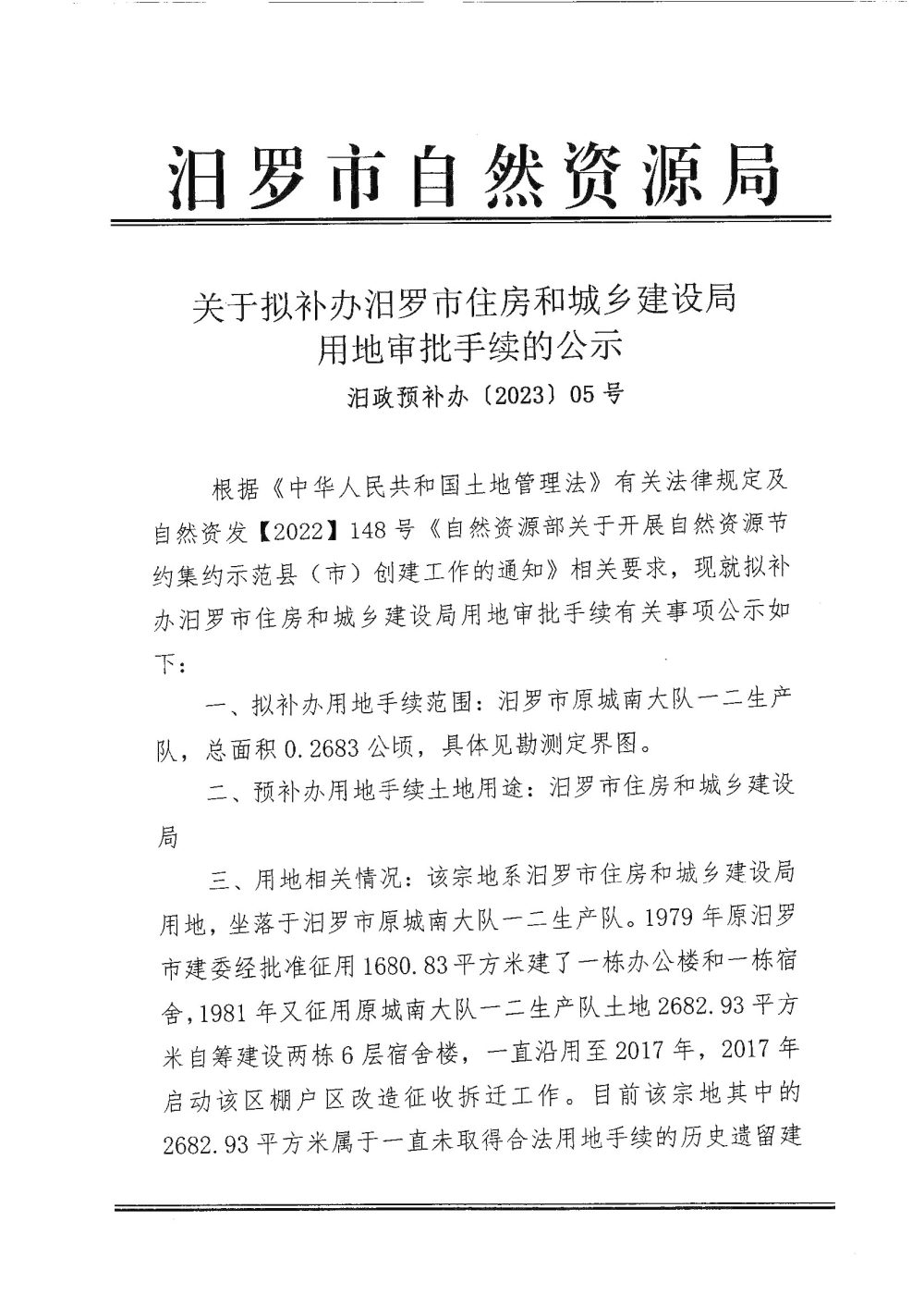 关于拟补办汨罗市住房和城乡建设局用地审批手续的公示